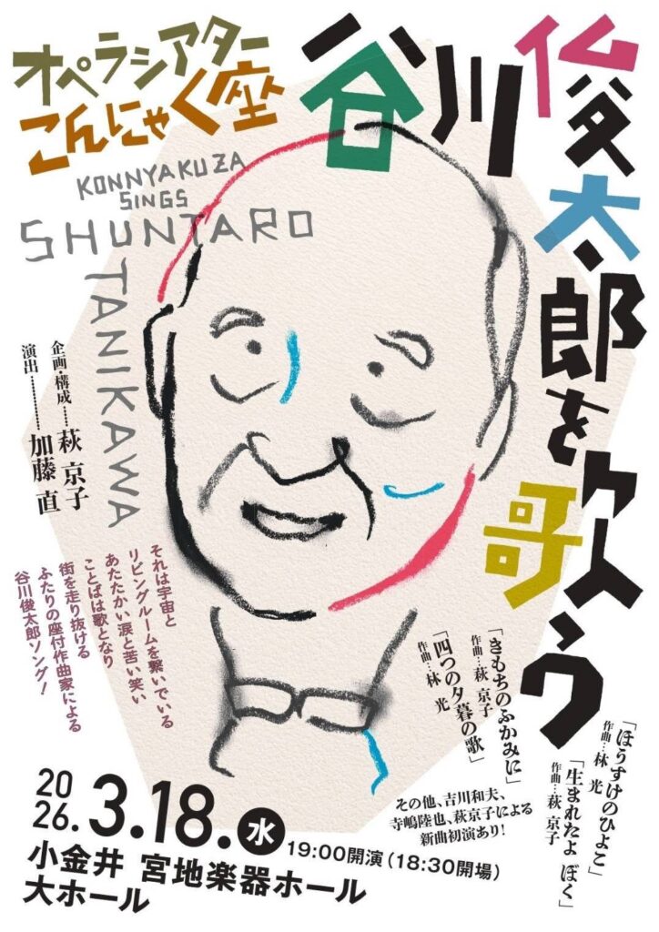 2026年3月18日(水)に行うコンサート、「こんにゃく座 谷川俊太郎を歌う」詳細ページを公開しました。ぜひご覧ください! - 2025年11月20日