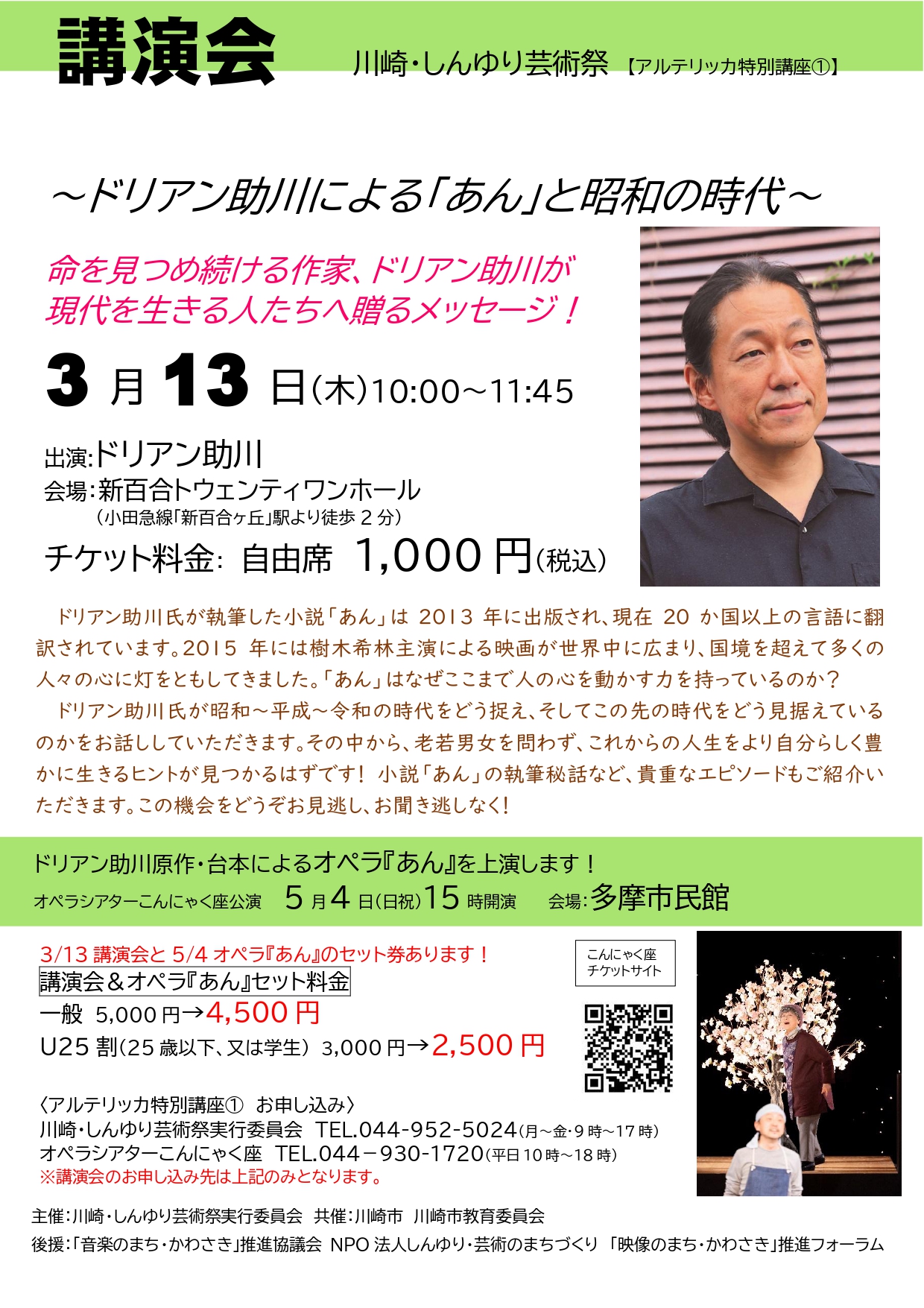 3/13講演会と5/4オペラ『あん』のセット券あります!